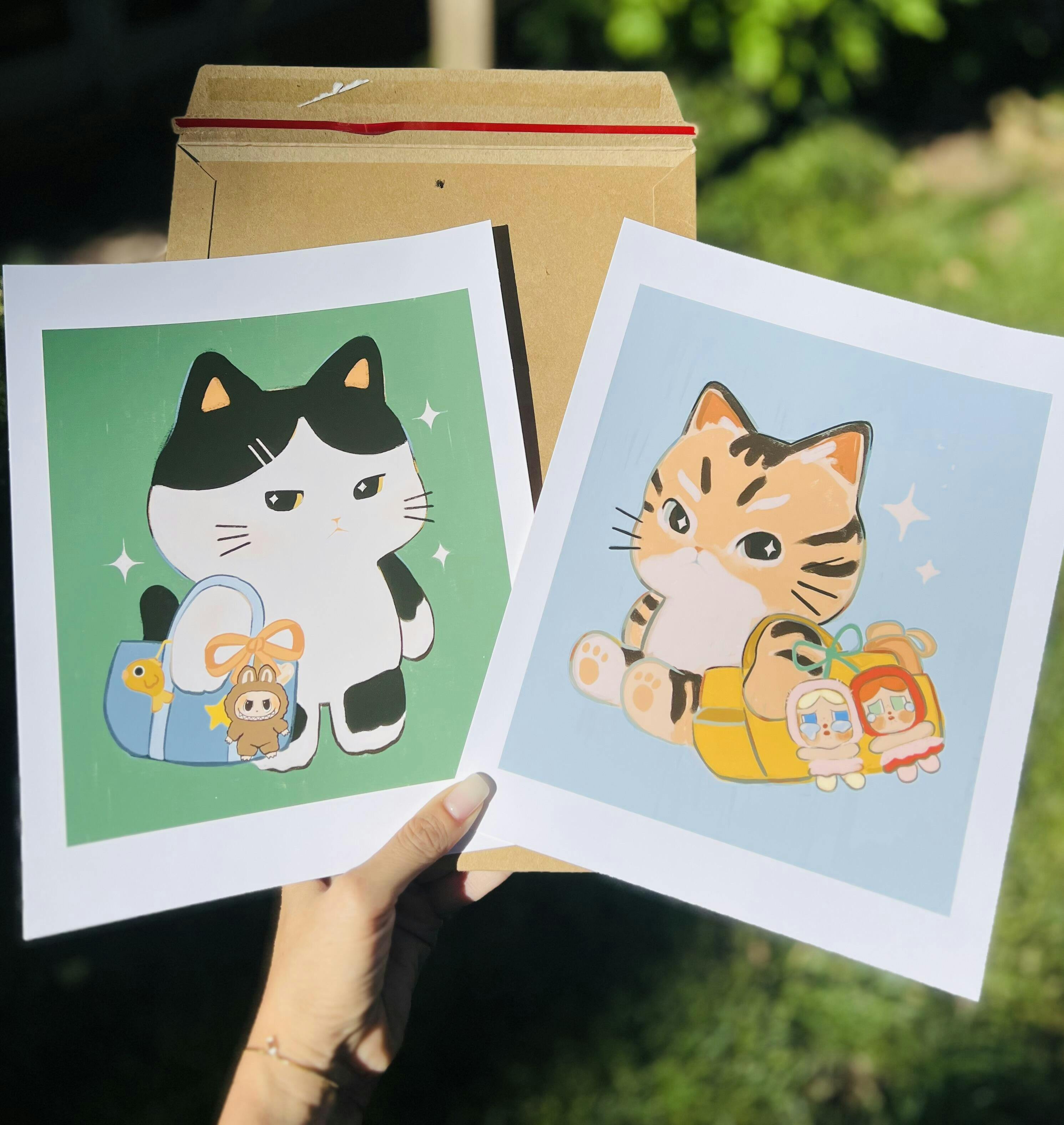 This artwork was printed on a thick matte photo paper for smooth results and is 8 x 10 inches big. Will be mailed in a stay flat mailer along with rigid chipboard to prevent bending.
