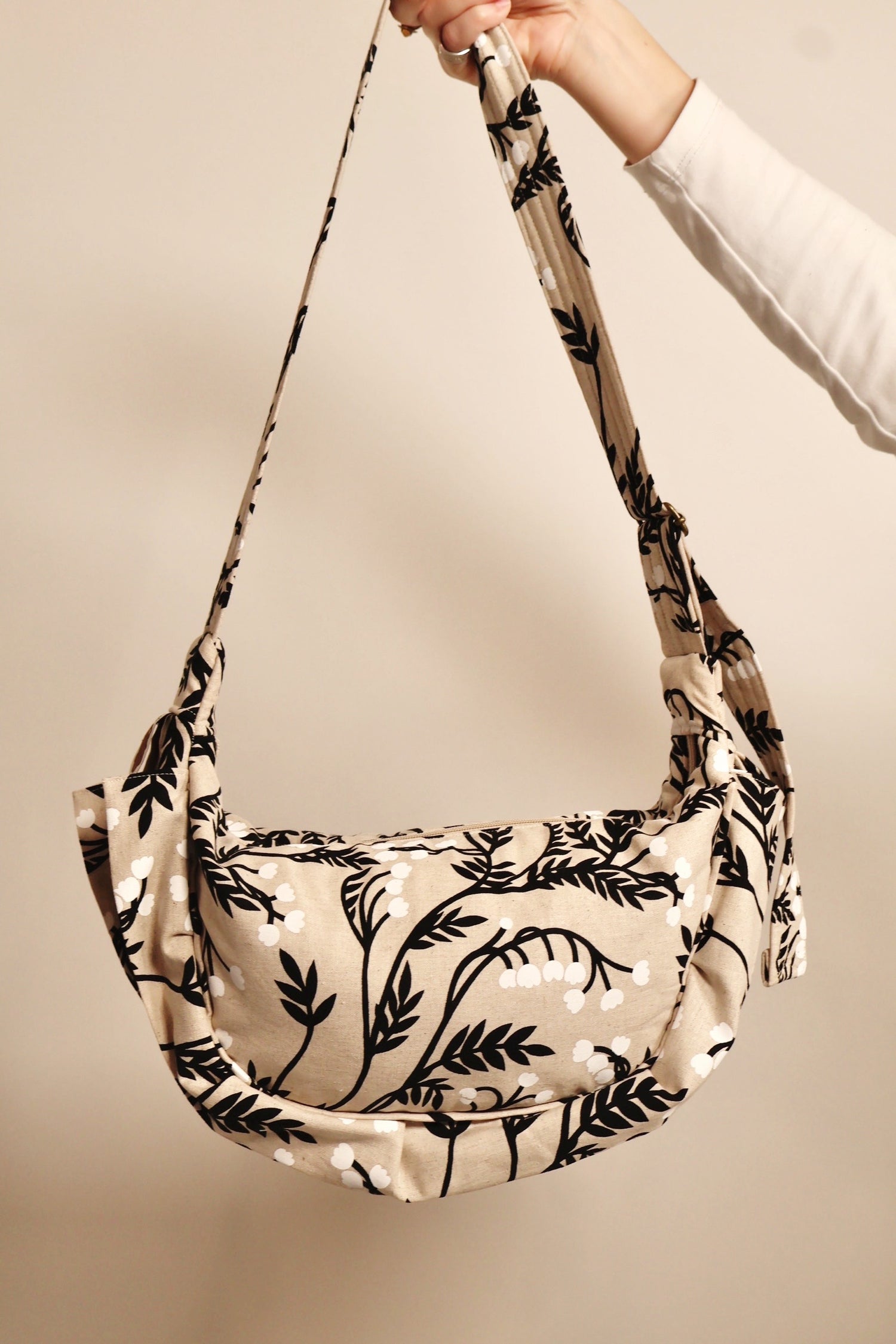 This bag was made with a fancy linen fabric that has dainty lily of the valley flower design.